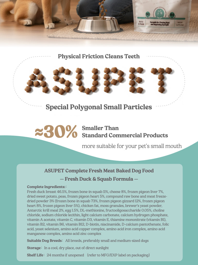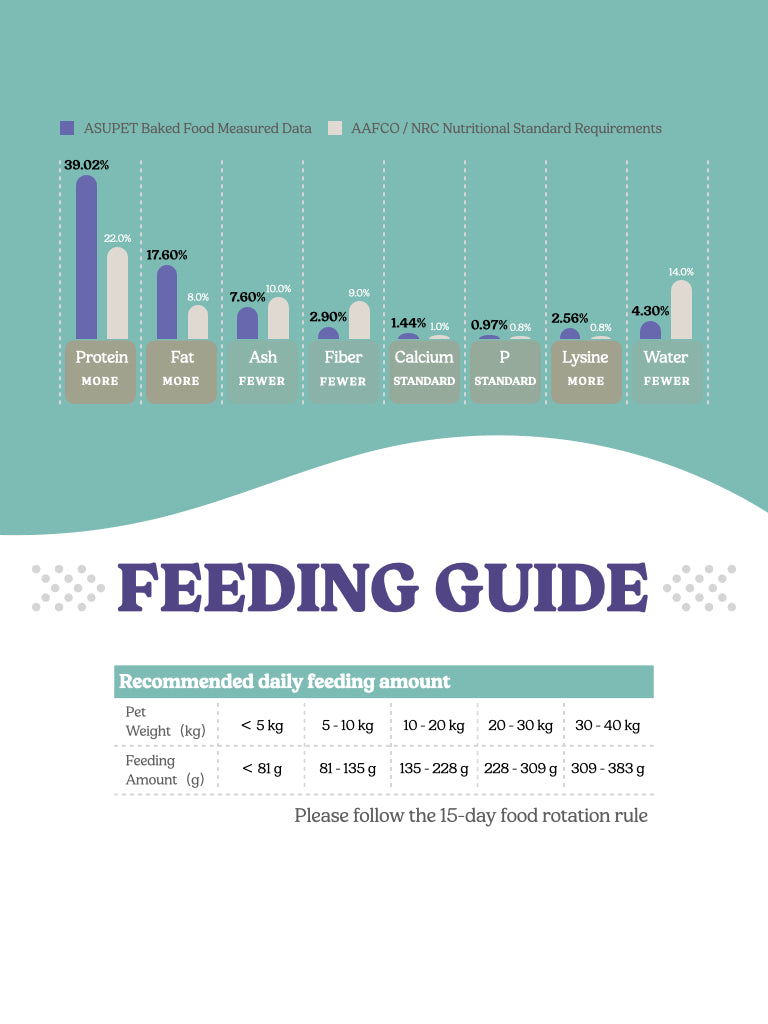 完整配料:鮮鴨胸肉46.5%、凍帶骨乳鴿肉11%、奶酪8%、凍鴿肝7%、紅薯乾、豌豆、凍鴿心5%、復配生骨肉凍乾粉3%(凍帶骨乳鴿73%、凍鴿胗12%、凍鴿心8%、凍鴿肝5%)、雞油、苔蓿草顆粒、啤酒酵母粉、南極磷蝦粉2%、雞蛋1.5%、DL-蛋氨酸、果寡糖0.05%、氯化膽鹼、氯化鈉卵磷脂、輕質碳酸鈣、磷酸氫鈣、維生素A乙酸酯、維生素C、維生素D3、維生素E、硝酸硫胺 (維生素B1)、維生素B2、維生素B6、維生素B12、D-生物素、煙酰胺、D-泛酸鈣葉酸、酵母硒、氨基酸銅絡合物、氨基酸鐵絡合物、氨基酸錳絡合物、氨基酸鋅絡合物